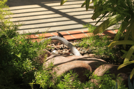 In meiner Heimatstadt Kalifornien habe ich viele Eidechsen im Garten oder auf Wanderwegen gesehen. Mein Vater hatte den schönsten Trockenbeetgarten angelegt, der wie geschaffen für den Urlaub einer Eidechse zu sein schien. Das Bild hier ist aus dem Garten meines Vaters. Die Eidechse sonnt sich auf einem Geweih mitten in einem ihrer Steingärten.